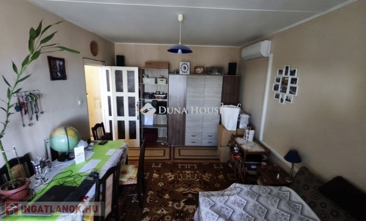 Eladó Pécs kertváros csendes, nyugodt utcájában a Siklósi úton, egy két szobás, negyedik emeleti, erkélyes lakás!Ha olyan otthont keres Pécs kertvárosi területén amit saját izlésére szabhat, és alakíthat, jó elhelyezkedésének köszönhetően könnyen megközelíthető, és minden szükséges bolt és szolgáltatás rendelkezésre áll akkor Önnek ajánlom ezt az ingatlant.Az ingatlan adatai:- Négy emeletes épület 4. emeletén található- 50 m2 - es- 2 szobás- erkélyes- távfűtéses- légkondisA keleti tájolású, nagy erkéllyel rendelkező szobában Split klíma biztosítja a nyári napokon a kellemes hőmérsékletet.A lakásba az ablakok műanyag szerkezetűre lettek cserélve.A fürdő és a Wc külön helyiségben található.A beépített szekrények kényelmes tárolást tesznek lehetővé a lakásban.Az ingatlanhoz tartozik egy nagyobb tároló negyedrésze az alagsorban.A lakóépület körbe szigetelt, jó lakóközösséggel.A távfűtésnek köszönhetően a rezsiköltségek kedvezőek.A lakás a negyedik emeleten található. Nincs felső lakó, dobogás, székhúzogatás, az ajtó előtt átmenő forgalom.A lakás tehermentes!Ha kérdése van hívjon, ha tetszik jöjjön és megmutatom!