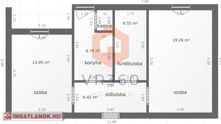 Az ingatlan két külön bejáratú szobával, konyhával, kamrával, fürdőszobával és erkéllyel rendelkezik. Déli fekvésének köszönhetően rendkívül világos.
