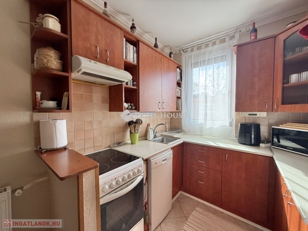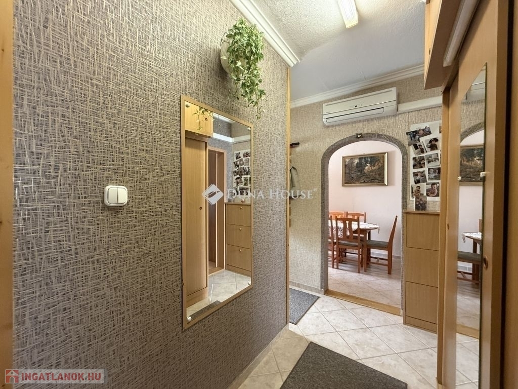 Eladó 64 m² alapterületű lakás Pécs Kertváros városrészében, a Berek utcában, egy 4 emeletes társasház, 4. emeletén.Az ingatlan átalakított elosztású, jelenleg két teljes értékű szobával és egy félszobával rendelkezik, a konyha étkező pedig kényelmesen használható nagyobb családoknak is, remek választás lehet pároknak, kisgyermekes családnak vagy akár befektetésre is. A belső tolóajtók praktikus térkihasználást biztosítanak, az erkély pedig plusz életteret ad a lakáshoz.A nyílászárók cserélve lettek, minden ablak redőnnyel és szúnyoghálóval felszerelt. Az elektromos hálózat teljes körűen újrahúzott, ami biztonsági és értéknövelő szempontból is kiemelten fontos. A lakás klímával felszerelt, jól kihasználható, élhető terekkel rendelkezik, Kertváros kedvelt részén, jó infrastruktúrával, üzletek, buszmegálló és intézmények közelében.Az ingatlanhoz saját, külön zárható tároló is tartozik.Megtekintésért keressen bizalommal.