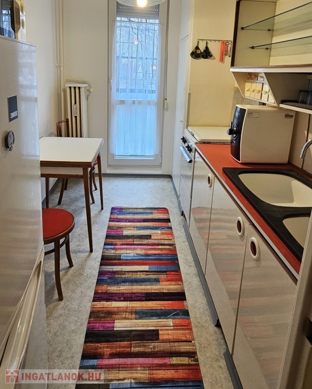 A lakáshoz erkély is tartozik, amely kellemes pihenőhelyet kínál. A környék kiváló infrastruktúrával rendelkezik: boltok, iskola, óvoda és tömegközlekedés is könnyen elérhető.