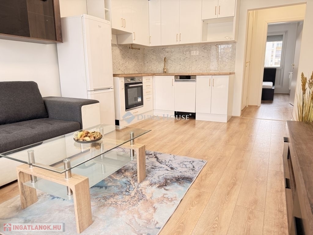 Pécs-kertváros kedvelt részén eladó egy 10/1.emeleti, vezetékekig felújított és átalakított, amerikai konyha nappali+ 2 szoba, külön fürdő és wc elosztású, erkélyes, egyedi mérős panel lakás szigetelt épületben.