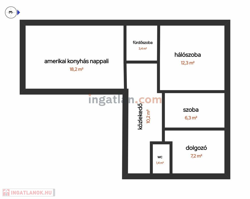 A korábbi konyhából egy plusz szoba került kialakításra (jelenleg dolgozószobaként használjuk), így a lakás a funkciókat tekintve 2,5 hálószobával és egy amerikai konyhás nappalival rendelkezik.