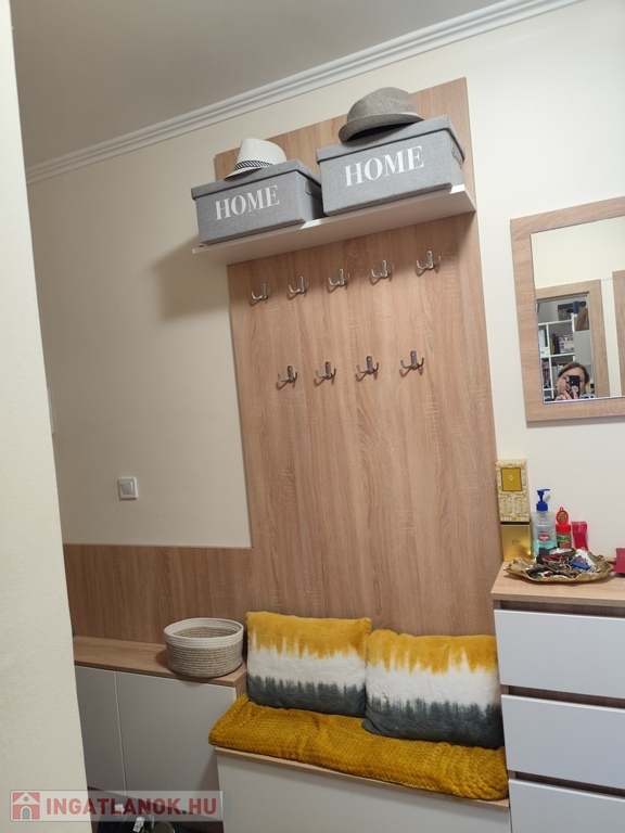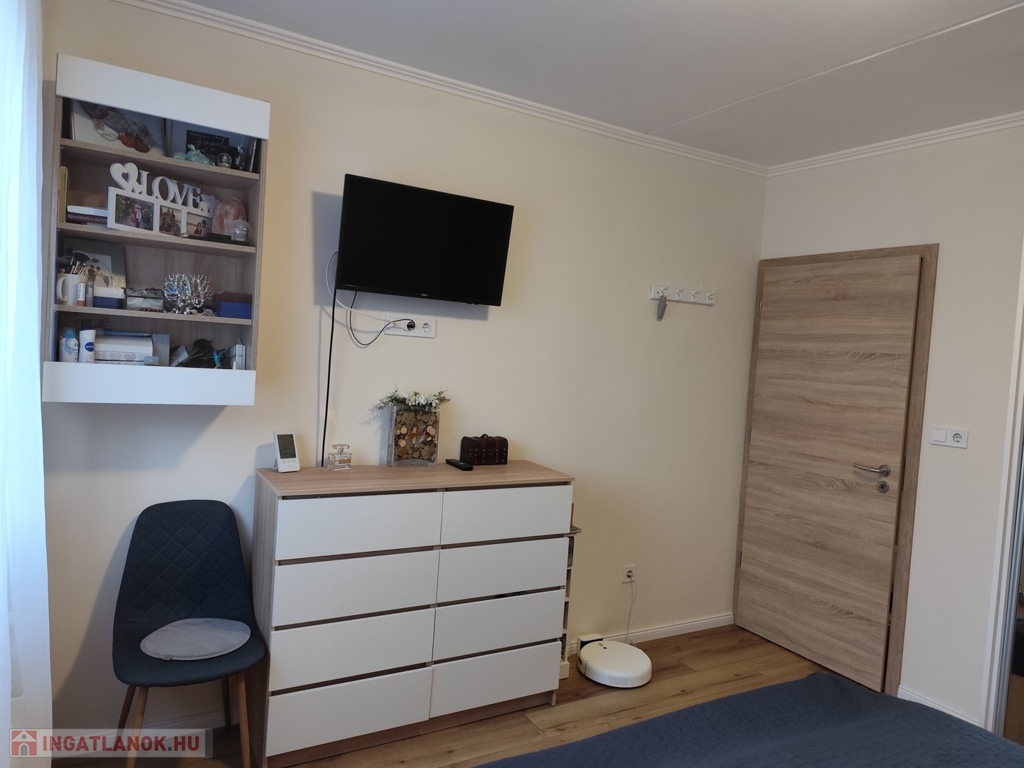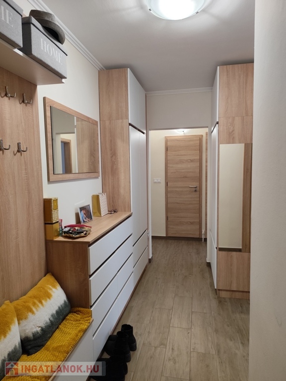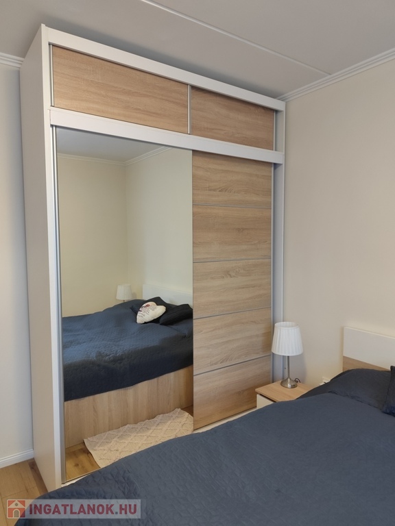 A közlekedő folyosón méretre, egyedileg tervezett beépített szekrények találhatóak. A két nagy szobában további 2 nagy méretű gardróbszekrény található, melyek megegyezés tárgyát képezik.