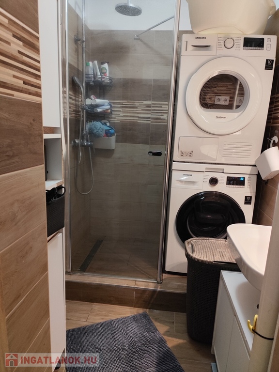 A fürdőszobában épített zuhanytálca és Ravak zuhanykabin került beszerelésre.
