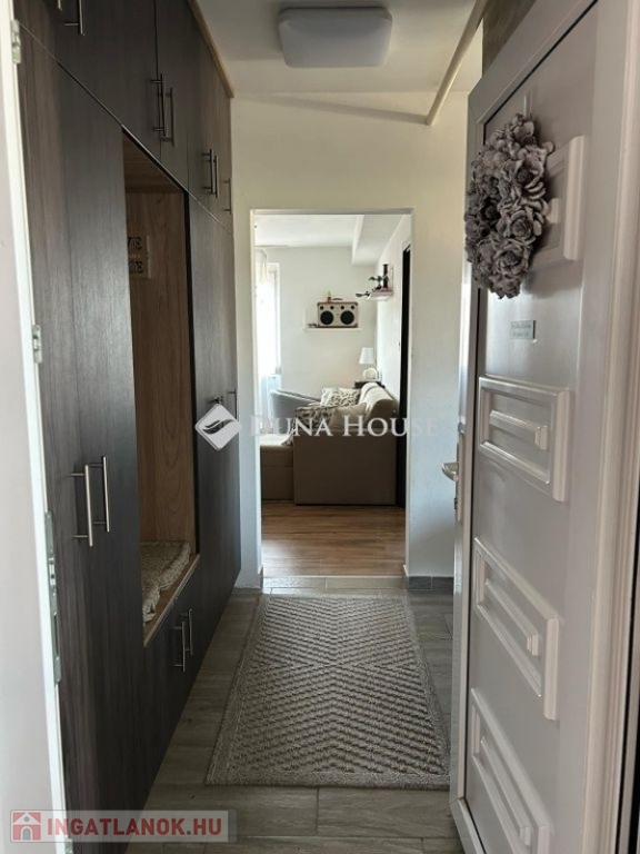 Kertvárosban eladó egy 67 m2-es, felújított, három szobás, erkélyes panellakás.Pécs egyik kedvelt részén, a Lahti utcában, eladásra kínálok egy 4. emeleti, 67 m²-es, három szobás lakást, ami 2020-ban teljes körű felújításon esett át.A lakás csendes, zöldövezeti környezetben helyezkedik el. A közelben bolt, benzinkút, buszmegálló, iskola, óvoda, stb.. gyalogosan pár perc alatt elérhető. A belváros (pl. Árkád) autóval 5-10, busszal kb. 10-15 perc alatt elérhető.Modern, igényes felújítás, világos, tágas terek, rendkívül szép kilátás. Rendezett társasház, jó lakóközösséggel. Ideális választás családoknak, pároknak vagy akár befektetőknek is.Felszereltség:Műanyag nyílászárók, biztonsági bejárati ajtó, kombinált redőny-szúnyogháló minden ablakon és az erkélyajtón is. A lakás légkondicionálóval felszerelt.Helyiségei:Előszoba, fürdőszoba, külön wc, konyha, nappali-étkező, szoba, szoba, gardróbszoba, erkély.Az ingatlanhoz tartozik egy tároló is, amelynek mérete kb 15 m2.A vételár magában foglalja a beépített bútorokat, így az előszobabútort, a konyhabútort (beépített sütővel, főzőlappal és mikróval), a fürdőszoba-bútort és a fürdőszoba előtti beépített szekrényt, valamint a gardróbszoba bútorzatát is.A parkolás a társasház előtt ingyenes.A felújított ingatlan per és tehermentes, AZONNAL költözhető.