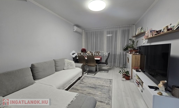 Világos, jó elosztású , teljesen felújított 3 szobás lakás!Pécs Kertváros központi részén, a Nagy Imre úton kínálok megvételre egy 63m²-es, háromszobás, kelet-nyugati tájolású, rendkívül világos és kényelmes elrendezésű lakást, panelprogramban felújított társasház 2. emeletén.A környezet nyugodt és barátságos, kiváló infrastruktúrával rendelkezik: a közelben található több bolt, gyógyszertár, orvosi rendelő, iskola, óvoda, valamint buszmegálló is minden fontos intézmény néhány perc sétával elérhető.A lakás főbb jellemzői:-63 m² alapterület-3 szoba-tágas erkély-K-Ny-i tájolás, napfényes helyiségek-Műanyag nyílászárók redőnnyel-Új bejárati és beltéri ajtók-Új konyhabútor, előszobabútor-felújított villany és vízvezeték-Klímával felszereltRendkívül kedvező rezsi:Téli fűtés + meleg víz: kb. 25.000 Ft/hóNyári rezsi (meleg vízzel együtt): kb. 9.000 Ft/hóPanelprogram elvégezve: a társasház szigetelt, a homlokzati nyílászárócsere megtörténtRendezett tulajdoni viszony, tehermentes, lakóközösség kiválóIdeális választás kis családoknak, akik fontosnak tartják a jó elosztást és a világos teret illetve fiatal párok számára, befektetőknek, akik jól kiadható lakást keresnek.Személyes megtekintésért várom hívását!
