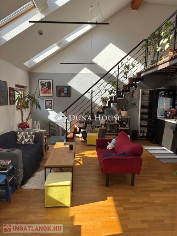 A lakás kialakítása rendkívül praktikus: amerikai konyhás tágas déli tájolású napfényes mellett a galéria beépítésével kialakított háló és dolgozó/gardrób rész különleges térérzettel bír.
