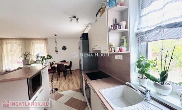 Eladó modern földszinti lakás nagy fedett terasszal és kertkapcsolattal Pécs, Rigóderi városrészPécs egyik kedvelt, csendes részén, a Rigóderi városrészben eladóvá vált egy 2008-ban épült, rendezett társasházföldszinti, fiatalosan berendezett, modern lakása.Az ingatlan amerikai konyhás nappaliból, két kényelmes hálószobából, külön fürdőből és WC-ből áll. A lakáshoz tartozik egy nagyméretű, fedett terasz, valamint egy kis, saját kertkapcsolat, ami tökéletes helyszín a pihenésre vagy baráti összejövetelekre.A lakás világos, jól szellőző, ízlésesen kialakított, azonnal költözhető állapotban van. A fűtés egyedi gázkazánnal történik, így a rezsi rendkívül kedvező. Emellett klíma is beszerelésre került, ami nyáron kényelmes hőmérsékletet biztosít. A lakóközösség barátságos és összetartó, a ház pedig csendes, rendezett környezetben található.A vételár tartalmaz egy saját udvari gépkocsibeállót, valamint a ház előtt további parkolási lehetőség is biztosított.Főbb jellemzők:2008-as építés, modern társasházFöldszinti, fedett teraszos, kertkapcsolatos lakás2 hálószoba + amerikai konyhás nappaliKülön fürdő és WCEgyedi gázfűtés, kedvező rezsiKlímával felszereltSaját parkoló + utcai parkolási lehetőségCsendes környezet, jó lakóközösségIdeális választás fiatal pároknak, kisgyermekes családoknak, vagy akár befektetésre is kiváló lehetőség.