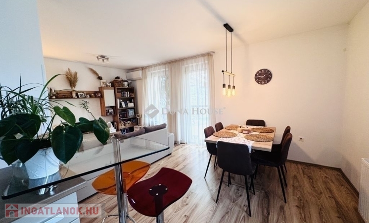 Eladó modern földszinti lakás nagy fedett terasszal és kertkapcsolattal Pécs, Rigóderi városrészPécs egyik kedvelt, csendes részén, a Rigóderi városrészben eladóvá vált egy 2008-ban épült, rendezett társasházföldszinti, fiatalosan berendezett, modern lakása.Az ingatlan amerikai konyhás nappaliból, két kényelmes hálószobából, külön fürdőből és WC-ből áll. A lakáshoz tartozik egy nagyméretű, fedett terasz, valamint egy kis, saját kertkapcsolat, ami tökéletes helyszín a pihenésre vagy baráti összejövetelekre.A lakás világos, jól szellőző, ízlésesen kialakított, azonnal költözhető állapotban van. A fűtés egyedi gázkazánnal történik, így a rezsi rendkívül kedvező. Emellett klíma is beszerelésre került, ami nyáron kényelmes hőmérsékletet biztosít. A lakóközösség barátságos és összetartó, a ház pedig csendes, rendezett környezetben található.A vételár tartalmaz egy saját udvari gépkocsibeállót, valamint a ház előtt további parkolási lehetőség is biztosított.Főbb jellemzők:2008-as építés, modern társasházFöldszinti, fedett teraszos, kertkapcsolatos lakás2 hálószoba + amerikai konyhás nappaliKülön fürdő és WCEgyedi gázfűtés, kedvező rezsiKlímával felszereltSaját parkoló + utcai parkolási lehetőségCsendes környezet, jó lakóközösségIdeális választás fiatal pároknak, kisgyermekes családoknak, vagy akár befektetésre is kiváló lehetőség.
