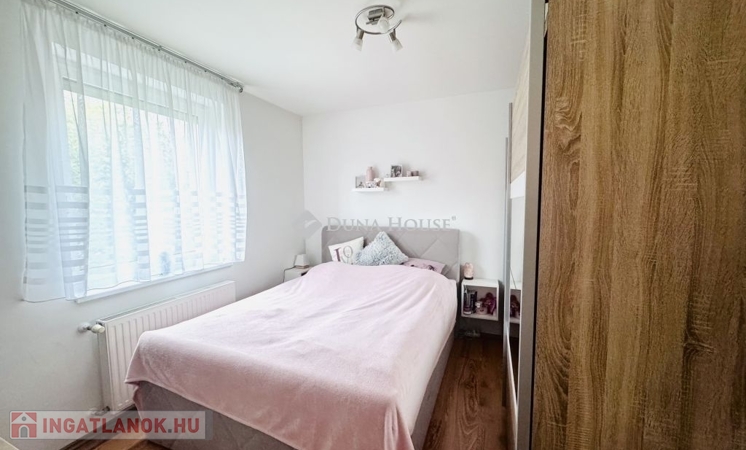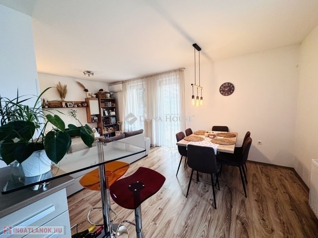 Eladó modern földszinti lakás nagy fedett terasszal és kertkapcsolattal Pécs, Rigóderi városrészPécs egyik kedvelt, csendes részén, a Rigóderi városrészben eladóvá vált egy 2008-ban épült, rendezett társasházföldszinti, fiatalosan berendezett, modern lakása.Az ingatlan amerikai konyhás nappaliból, két kényelmes hálószobából, külön fürdőből és WC-ből áll. A lakáshoz tartozik egy nagyméretű, fedett terasz, valamint egy kis, saját kertkapcsolat, ami tökéletes helyszín a pihenésre vagy baráti összejövetelekre.A lakás világos, jól szellőző, ízlésesen kialakított, azonnal költözhető állapotban van. A fűtés egyedi gázkazánnal történik, így a rezsi rendkívül kedvező. Emellett klíma is beszerelésre került, ami nyáron kényelmes hőmérsékletet biztosít. A lakóközösség barátságos és összetartó, a ház pedig csendes, rendezett környezetben található.A vételár tartalmaz egy saját udvari gépkocsibeállót, valamint a ház előtt további parkolási lehetőség is biztosított.Főbb jellemzők:2008-as építés, modern társasházFöldszinti, fedett teraszos, kertkapcsolatos lakás2 hálószoba + amerikai konyhás nappaliKülön fürdő és WCEgyedi gázfűtés, kedvező rezsiKlímával felszereltSaját parkoló + utcai parkolási lehetőségCsendes környezet, jó lakóközösségIdeális választás fiatal pároknak, kisgyermekes családoknak, vagy akár befektetésre is kiváló lehetőség.
