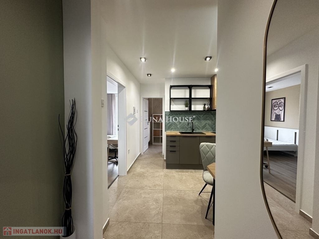 Exkluzív, teljeskörűen felújított lakás Pécs belvárosában befektetőknek és saját otthonnak egyaránt!Eladásra kínálok egy 64 m²-es, 7. emeleti, teljeskörűen felújított lakást Pécs szívében. Az ingatlan minden részletében igényesen átalakított, így modern, kényelmes otthont biztosít új tulajdonosának.A lakás jellemzői: új víz- és villanyvezetékek, álmennyezeti LED lámpák modern hangulatvilágítással, asztalos által készített, gépesített, egyedi konyhabútor, teljesen felszerelt és bútorozott állapot, 3 klíma a tökéletes hőérzetért, tágas, világos terek, minőségi burkolatok.A belvárosi elhelyezkedésnek köszönhetően minden fontos szolgáltatás, bolt, étterem és közlekedési csomópont könnyedén elérhető.