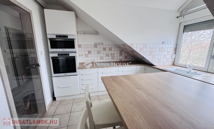 Eladó tetőtéri lakás Pécs közkedvelt Uránváros városrészében!Pécs egyik legkedveltebb, zöldövezeti részén, Uránvárosban eladóvá vált egy 1990-ben épült, kiváló állapotú, egyedi gázfűtéses tetőtéri lakás. Az ingatlan elrendezése és tágas tereinek köszönhetően ideális választás akár családok számára is.A lakás nettó alapterülete jól átgondolt elrendezésű:két különnyíló hálószoba,egy tágas, világos nappali,külön konyha és étkező,fürdőszoba és külön WC,kamra,dolgozósarok a gardrób részeként.A lakáshoz tartozik egy kb. 15 m²-es nagyméretű terasz, amely kiváló helyszínt biztosít pihenésre vagy baráti összejövetelekre.A lakás fenntartási költsége rendkívül kedvező, a fűtést és meleg vizet egyedi gázkazán biztosítja.A minőségi konyhabútor és beépített konyhai gépek a vételár részét képezik, ahogy a jelenlegi bútorzat is megegyezés tárgyát képezi.Az ingatlanhoz saját tároló is tartozik, a ház pedig rendezett, zöldövezeti környezetben található, jó szomszédsággal és kiváló infrastruktúrával: boltok, iskola, óvoda, buszmegálló néhány perces sétával elérhető.