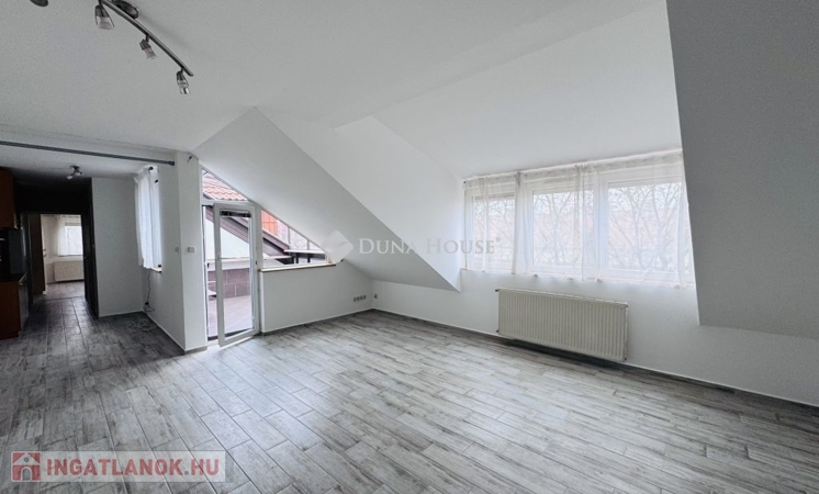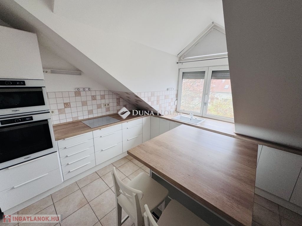 Eladó tetőtéri lakás Pécs közkedvelt Uránváros városrészében!Pécs egyik legkedveltebb, zöldövezeti részén, Uránvárosban eladóvá vált egy 1990-ben épült, kiváló állapotú, egyedi gázfűtéses tetőtéri lakás. Az ingatlan elrendezése és tágas tereinek köszönhetően ideális választás akár családok számára is.A lakás nettó alapterülete jól átgondolt elrendezésű:két különnyíló hálószoba,egy tágas, világos nappali,külön konyha és étkező,fürdőszoba és külön WC,kamra,dolgozósarok a gardrób részeként.A lakáshoz tartozik egy kb. 15 m²-es nagyméretű terasz, amely kiváló helyszínt biztosít pihenésre vagy baráti összejövetelekre.A lakás fenntartási költsége rendkívül kedvező, a fűtést és meleg vizet egyedi gázkazán biztosítja.A minőségi konyhabútor és beépített konyhai gépek a vételár részét képezik, ahogy a jelenlegi bútorzat is megegyezés tárgyát képezi.Az ingatlanhoz saját tároló is tartozik, a ház pedig rendezett, zöldövezeti környezetben található, jó szomszédsággal és kiváló infrastruktúrával: boltok, iskola, óvoda, buszmegálló néhány perces sétával elérhető.