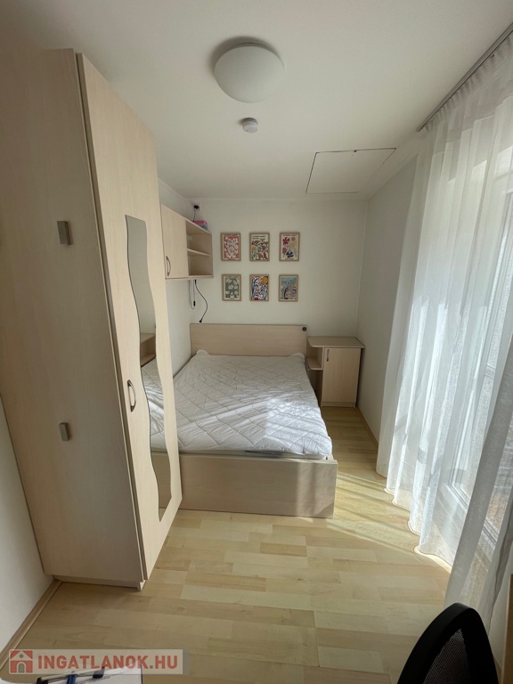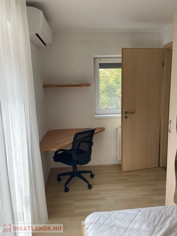 Erkélyes szoba (beépített szekrény és könyvespolc, franciaágy felnyitható, íróasztal, éjjeliszekrény)