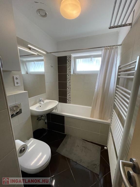 Fürdőszoba: kád, kézmosó, wc, időzítős elektromos kiszellőztetés)