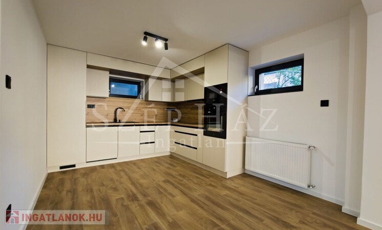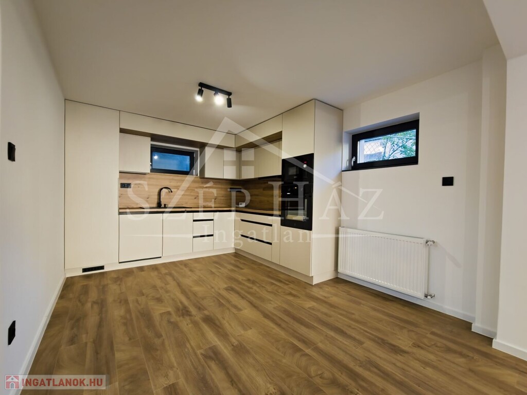 A modern, amerikai konyhás nappali és a két külön nyíló hálószoba kényelmes otthont biztosít, míg a saját kertkapcsolat valódi privát életteret teremt.