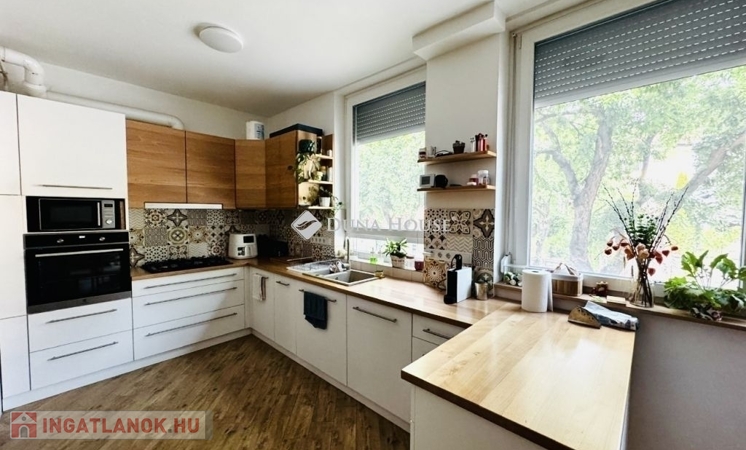 PÉCS-MECSEKOLDALONBelvárostól 5 percre gyalog,ELADÓ egy 4 lakásos társasházban egy gyönyörűen felújított 91 nm-es lakás, GarázzsalAz ingatlan belső kétszintes,2021-ben teljeskörű felújításon esett át mely a következőket tartalmazza:teljes elektromos hálózatcsere,rejtett fűtéscsövek,háromrétegű, hő- és hangszigetelő nyílászárók,az emeleten solar hővédő üvegezés készült.Az alsó szinten világos nappali, egyedi, tömör bükkfából készült konyha étkezővel és kamrával, előszoba, valamint külön vendég mosdó található.Az emeleten két hálószoba valódi fa parkettával, modern fürdőszoba szauna előkészítéssel, dupla mosdóval és fűtött tükörrel, valamint kazánház/tároló kapott helyet.A 26 m²-es garázs, elektromos autótöltővel és külön almérővel, melynek irányára: 12M Ft, a garázs előtt még egy autónak van hely parkolni.Környéken: iskola, óvoda, bolt, rendelő is elérhető csupán pár percre gyalogosan.További értékes információkért keressen bizalommal.