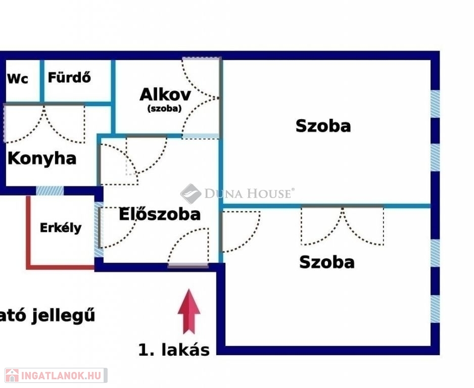 Az ingatlan elosztása: 3 nagy szoba, külön konyha-étkező, fürdőszoba, külön WC, valamint egy 6 m²-es erkély, amely az udvar felé néz. A lakás világos, reprezentatív megjelenésű, könnyen alakítható az új tulajdonos igényei szerint.