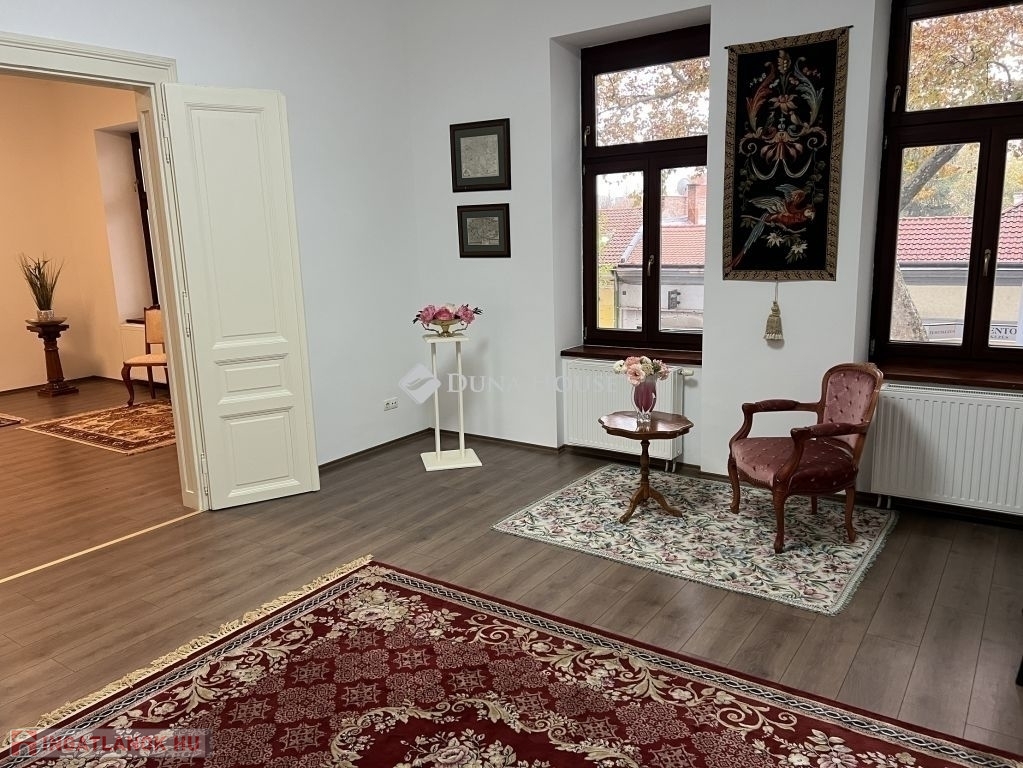 Eladó tágas, polgári lakás Pécs belvárosában, a Szabadság utcában – 104 m², erkéllyel, akár irodának, rendelőnek vagy szalonnak is ideális!Pécs frekventált részén, a Szabadság utcában kínálunk megvételre egy 104 m²-es, polgári stílusú, kiváló elrendezésű ingatlant. Az első emeleten található lakás tágas tereinek, nagy belmagasságának és jól tagolt alaprajzának köszönhetően nemcsak otthonnak, hanem irodának, ügyvédi irodának, rendelőnek, kozmetikai vagy egészségügyi szalonnak is tökéletes választás lehet.Az ingatlan elosztása: 3 nagy szoba, külön konyha-étkező, fürdőszoba, külön WC, valamint egy 6 m²-es erkély, amely az udvar felé néz. A lakás világos, reprezentatív megjelenésű, könnyen alakítható az új tulajdonos igényei szerint.Fűtése Viessmann gázkazánnal megoldott, az épület rendezett, a környék pedig könnyen megközelíthető, akár tömegközlekedéssel, akár autóval.További előny: az ingatlanhoz opcionálisan teremgarázs-hely is megvásárolható, ami ritkaság a belvárosban.Ha Ön egy jól megközelíthető, elegáns helyszínt keres vállalkozása számára, vagy értékálló belvárosi otthont, ez az ingatlan remek lehetőség!