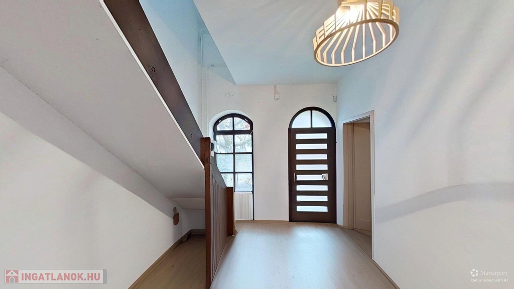 Az ingatlan főbejáratán egy tágas előtérben találjuk magunkat (ez akár váróként is hasznosítható, ha arra szükség lenne). Innen nyílik a földszinti lakrész, valamint egy lépcsőn innen lehet felmenni a felső lakrészbe.