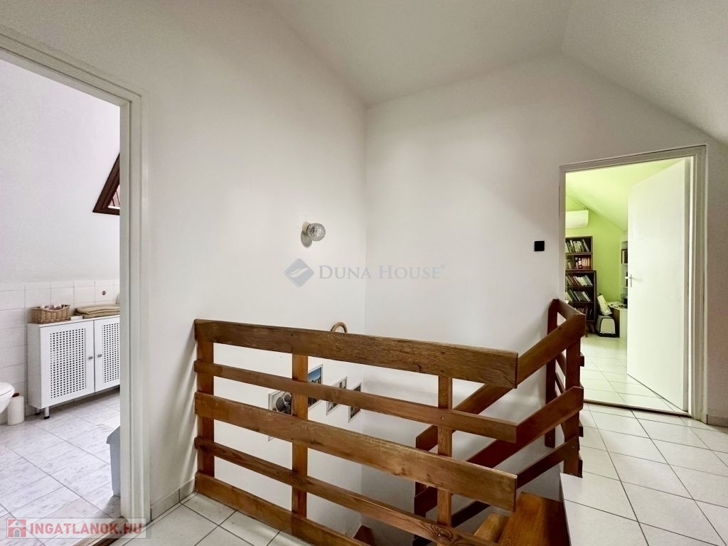 A felső szint három kényelmes hálószobát és egy kádas fürdőszobát kínál, melyek közül az egyik hálószobához saját terasz is tartozik.A lakás korszerű műszaki felszereltséggel rendelkezik: a kellemes hőérzetről padlófűtés gondoskodik infrapaneles rásegítéssel a klímaberendezés és a beépített szauna pedig tovább növelik a komfortot.