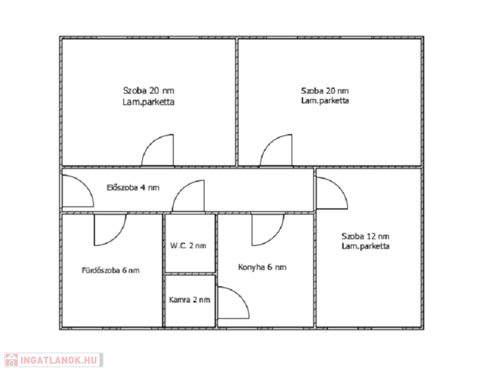 Az ingatlanban 2 szoba, 1 félszoba, konyha, kamra, előszoba, fürdőszoba, külön nyíló W.C. található.