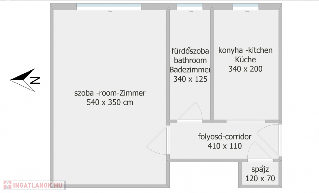 Az ingatlanban egy nagy méretű szoba, tágas konyha, fürdőszoba, folyosó és spájz található, a pontos alaprajz és a valós fotók alapján. No photoshop.
