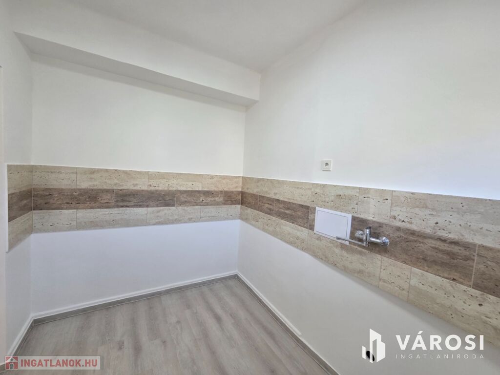 A mosókonyhában a mosógépnek a víz és szennyvízcsatlakozás kiépítésre került.