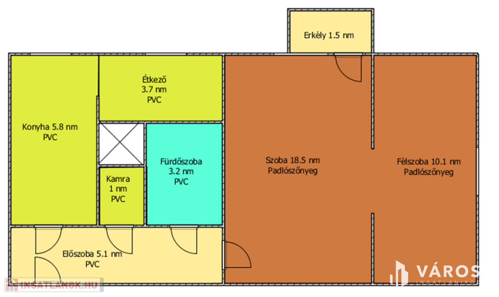 Az ingatlanban 1 szoba, 1 félszoba, konyha, étkező, kamra, fürdőszoba, előszoba, erkély található.