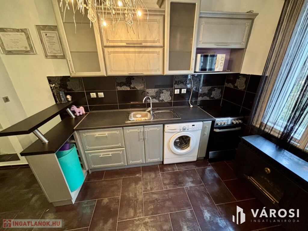 A konyhában modern, minőségi konyhabútor került beépítésre. A fürdőszoba és a külön nyíló W.C. felújított.