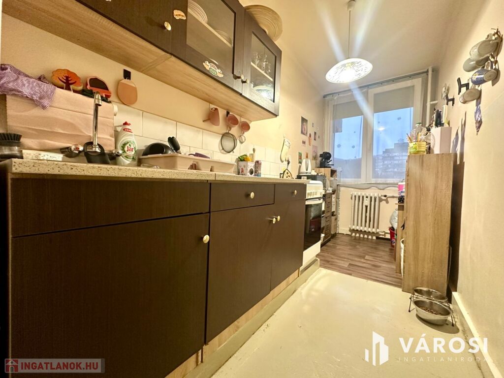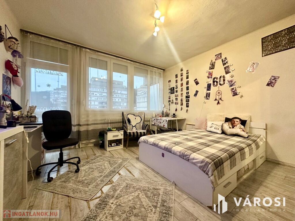 Salgótarjánban (Belváros), a Cascos házban, 49 nm-es, 6. emeleti, 1+1 félszobás, panorámás, átlagos állapotú lakás eladó!