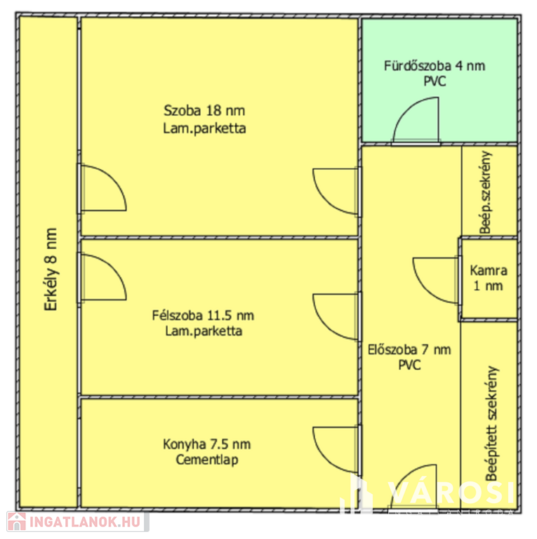Helyiségei: 1 szoba, 1 félszoba, konyha, kamra, előszoba, fürdőszoba, erkély.