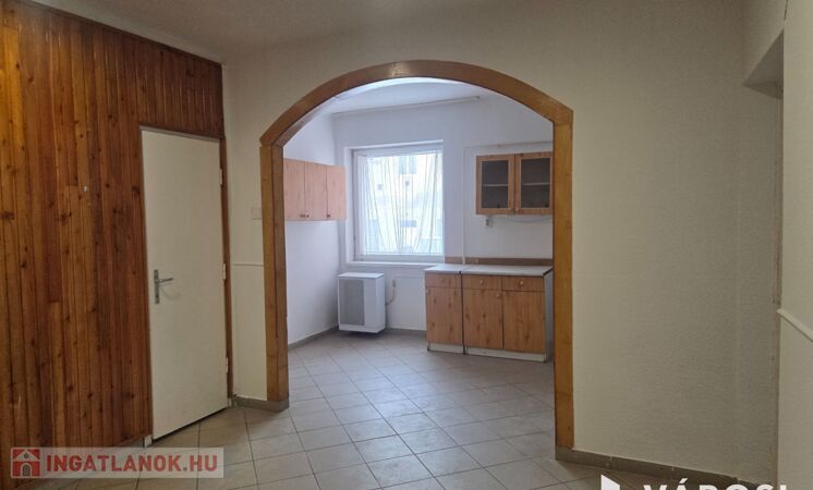 Eladó Salgótarjánban a Vásártéren, egy kétszobás, tágas nappalival és amerikai konyhával rendelkező lakás.