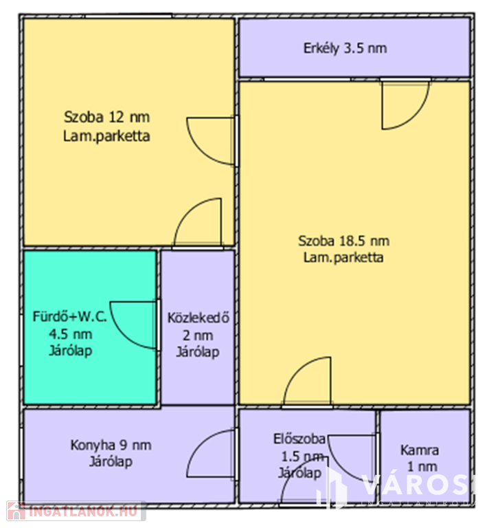 Az ingatlanban 2 szoba, konyha, kamra, fürdőszoba, előszoba, erkély található.