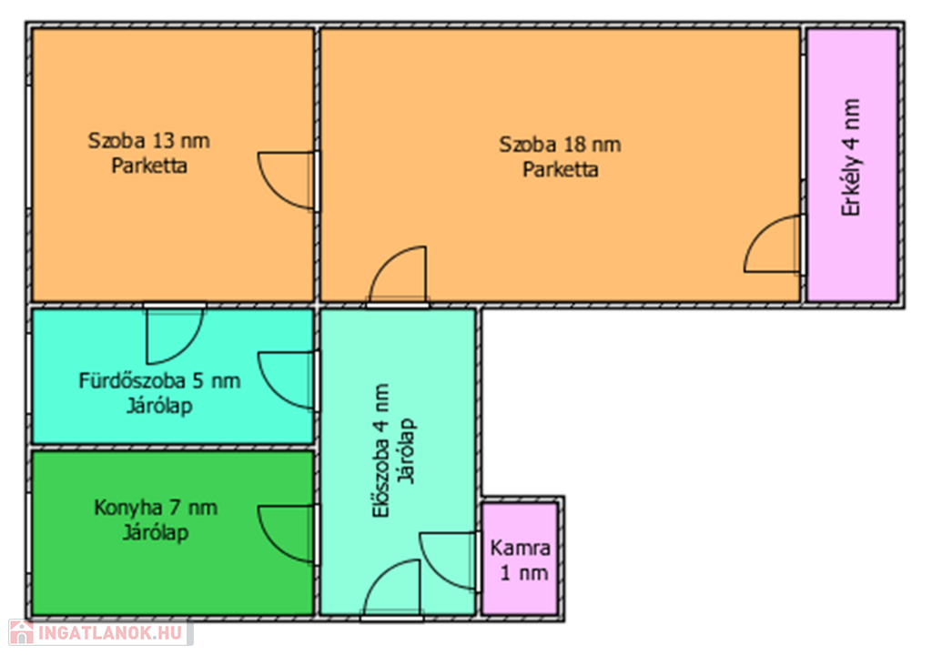 Az ingatlanban 2 szoba, konyha, kamra, előszoba, fürdőszoba, erkély található.