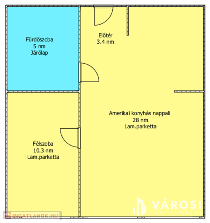Helyiségei: amerikai konyhás nappali, hálószoba, előtér, fürdőszoba.