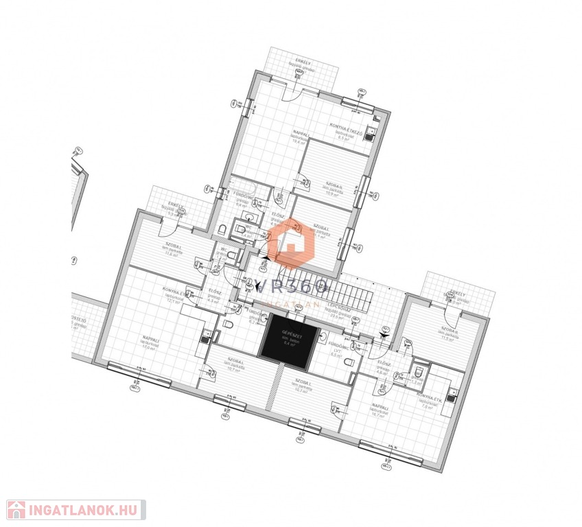 -fűtés: a kp-i fűtés a gépészeti/háztartási helyiségben elhelyezett levegő-víz hőszivattyúval lesz biztosítva padlófűtéssel.Lakásonként hőmennyiségmérő.