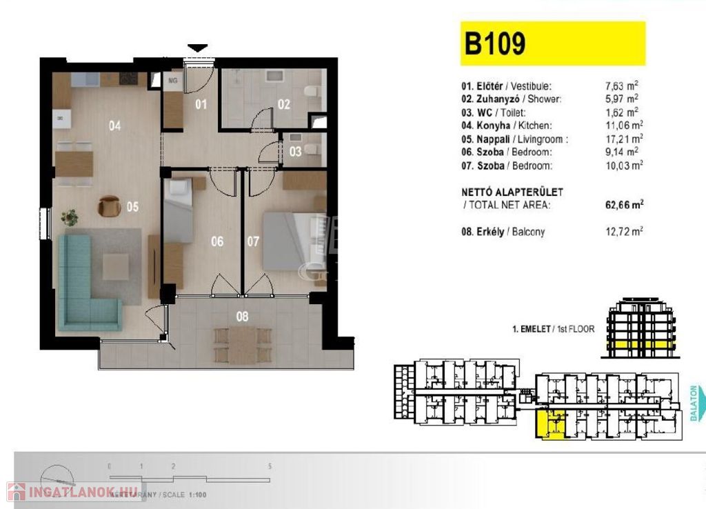 Az ötemeletes apartmanház a Balatonra merőlegesen helyezkedik el, így biztosítva a lakásokból az örök balatoni panorámát tulajdonosainak. Modern, új építésű, prémium minőségű apartmanok várják Önt, közvetlenül a vízparton. Az ingatlan előtt húzódó több mint 3 km hosszú szabad strand gondozott zöldterületekkel, parti sétányokkal és sportolási lehetőségeket kínáló kölcsönzőhelyekkel szolgálja ki az itt nyaralók igényeit.
