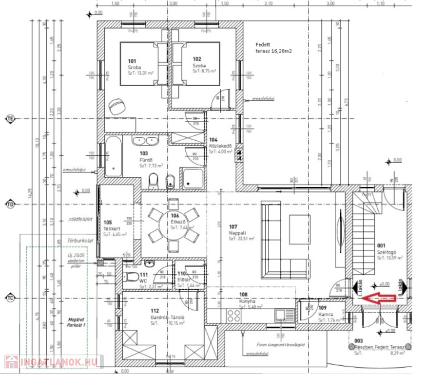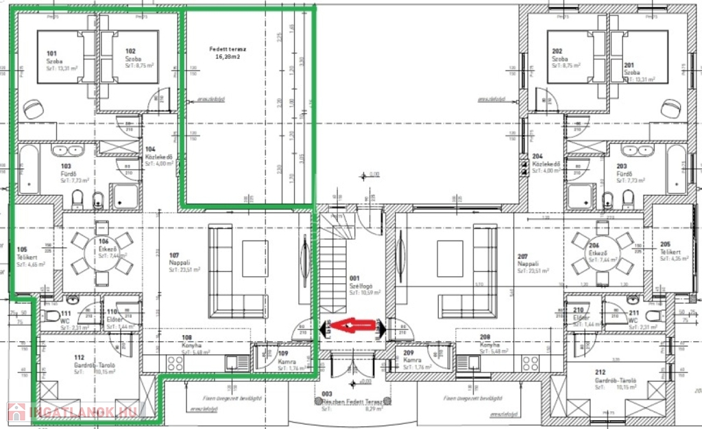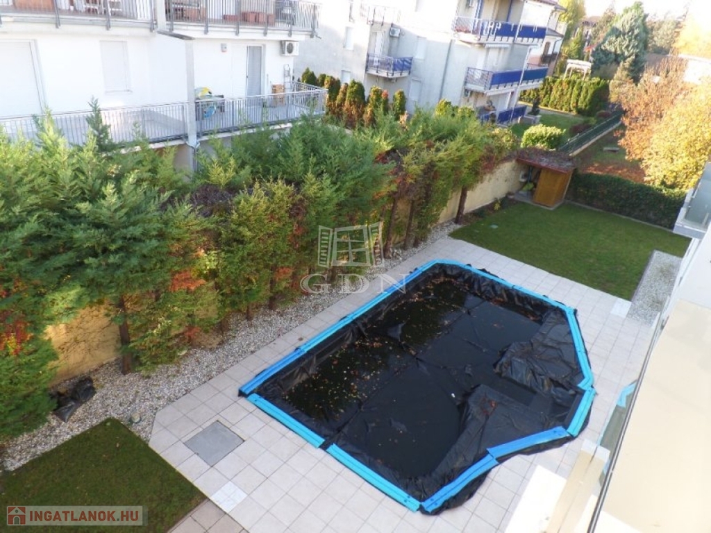 A 6 lakásos társasház rendezett, közös használatú udvarán található medence, és napozó terasz. A lakásokhoz 2 saját autóbeálló tartozik, melyek megvásárlása kötelező, ára 2x4.000.000,- Ft.
