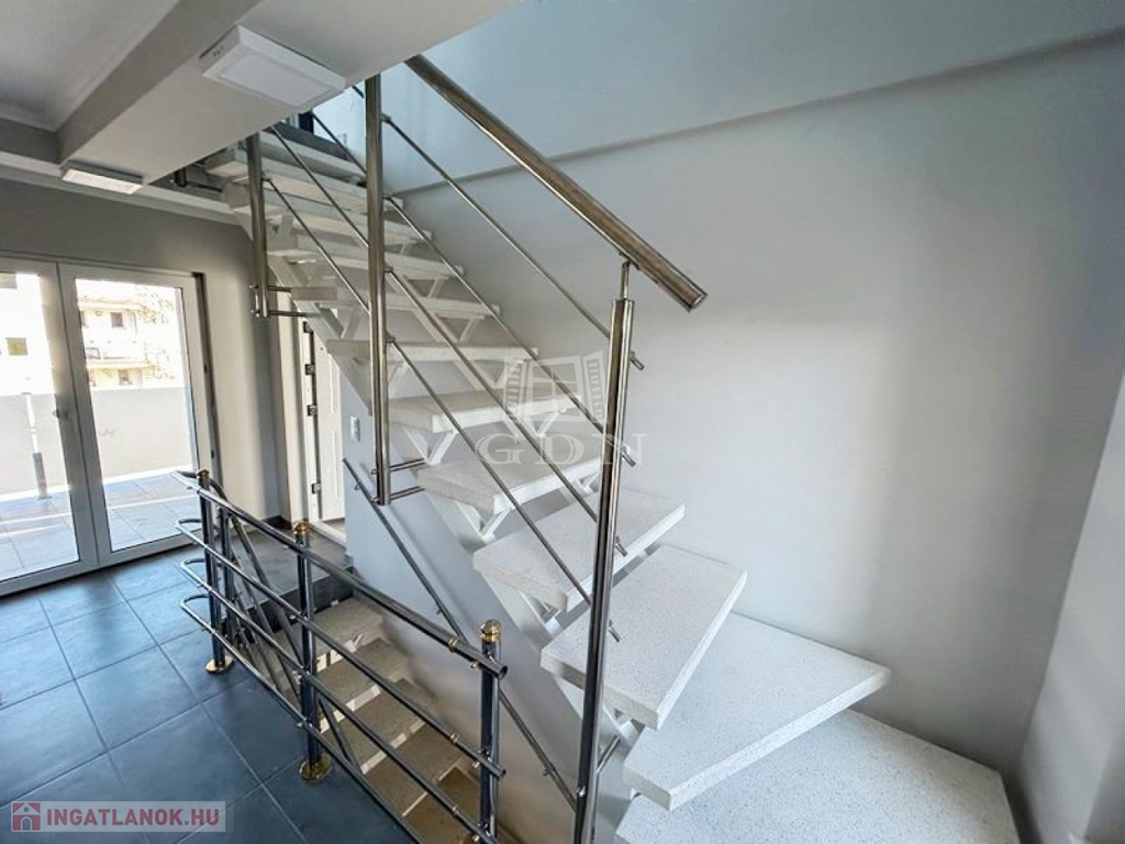 Az ingatlan magas színvonalú kivitelezéssel került újjáépítésre, a mai kor energetikai igényei alapján. A 2 szintes társas ház téglából épült, homlokzati szigeteléssel rendelkezik. A fűtés termosztáttal vezérelt elektromos padlófűtés, hűtő-fűtő klíma. Műszaki paraméterei: szigetelt lemeztető, műanyag nyílászárók, fa beltéri ajtók, minőségi meleg és hidegburkolatok. A lakásban lévő berendezés a vételár részét képezi.