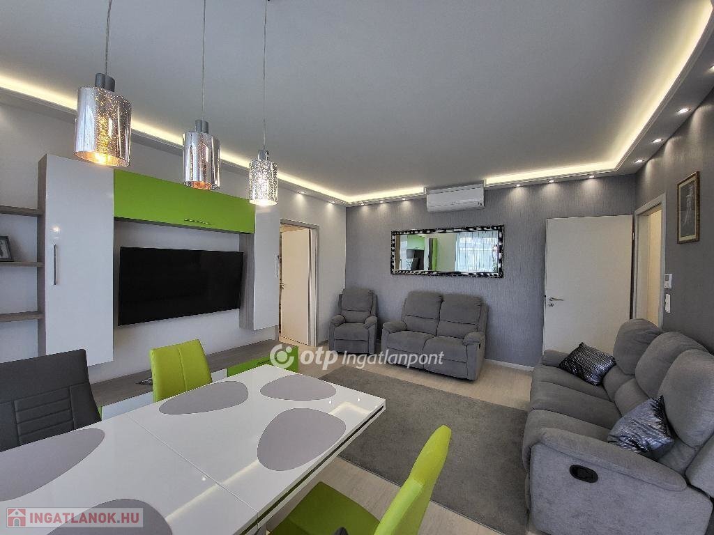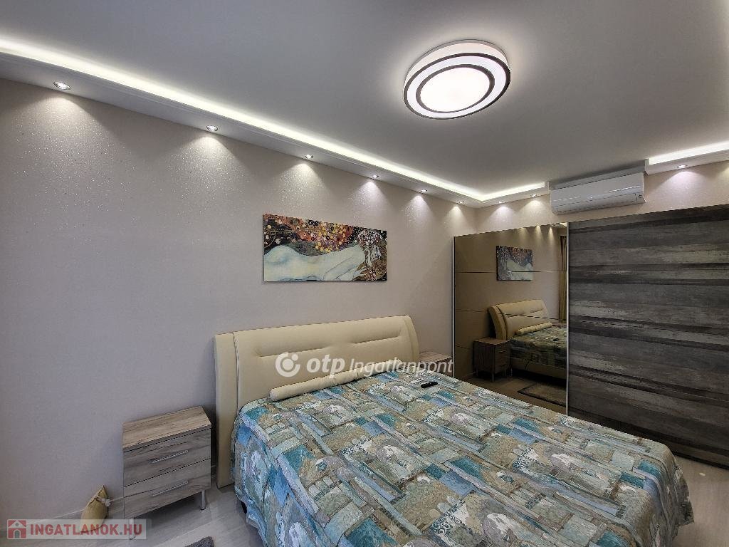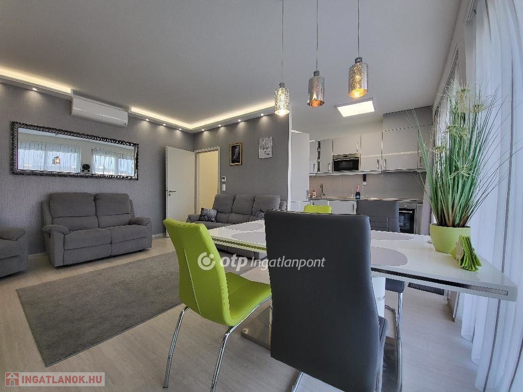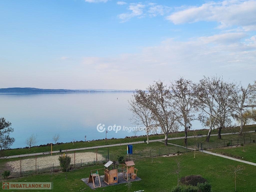 Balaton Déli part, Siófok Balatonszéplak 76 m2 örökpanorámás lakás eladó. A liftes társasházi lakás az Ezüstparton, közvetlenül a szabadstrand mellett, egy lakóparkban helyezkedik el csendes, nyugodt környezetben. A negyedik emeleti, az ingatlannyilvántartás szerint 62 m2-es lakótérhez tartozik egy 32 m2-es terasz, egy 3 m2-es saját tároló és egy parkolóőrrel ellátott gépkocsi beálló. A nyílászárók szúnyoghálóval és elektromos redőnyökkel felszereltek. A távvezérléssel irányítható fűtést hőszivattyú biztosítja. A lakóparkba autóval elektromos kapun keresztül, gyalogosan számkódos/kulcsos kiskapun keresztül juthatunk be, a szabadstrandot számkódos kapu választja el az ingatlantól. A közös költség tartalmazza a fűtést, takarítást az udvaron, a gondnokot, kertészt és a szemétdíjat is. Növeli az ingatlan értékét, hogy egy éve lett festve, tapétázva, és azóta nem használta senki. A lakás alkalmas állandó lakhatásra, nyaralásra, de kiváló lehetőség befektetési céllal kiadásra is. A panoráma örök, a hatalmas teraszról az év minden napján láthatjuk az ezerarcú Balatont, gyönyörködhetünk a napkeltében. Keleti tájolásának köszönhetően a legnagyobb nyári melegben is élvezhetjük a tetőterasz kényelmét, miközben a gyerekek a közeli játszótéren vagy a strandon látó- és hallótávolságon belül tölthetik a napot. Éttermek, játszótér, buszmegálló, vásárlási lehetőség a közelben, óvoda, iskola, egészségügyi intézmény könnyen elérhető távolságra. A tároló és a gépkocsi beálló 5-5 M Ft-os árát nem tartalmazza a hirdetési ár. Bővebb információért keressen telefonon! M324956