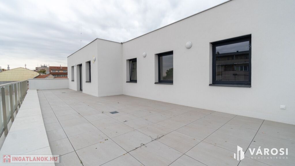 - Nettó alapterület: 115,19 m² + 69,61 m² saját tetőterasz, amely közvetlenül a belső udvarra néz, látszódik róla a víztorony is