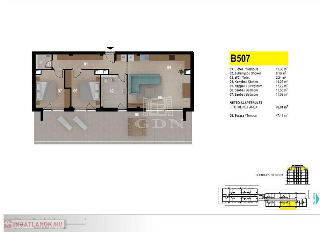 Az ötemeletes apartmanház a Balatonra merőlegesen helyezkedik el, így biztosítva a lakásokból az örök balatoni panorámát tulajdonosainak. Modern, új építésű, prémium minőségű apartmanok várják Önt, közvetlenül a vízparton. Az ingatlan előtt húzódó több mint 3 km hosszú szabad strand gondozott zöldterületekkel, parti sétányokkal és sportolási lehetőségeket kínáló kölcsönzőhelyekkel szolgálja ki az itt nyaralók igényeit.