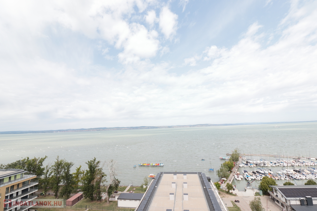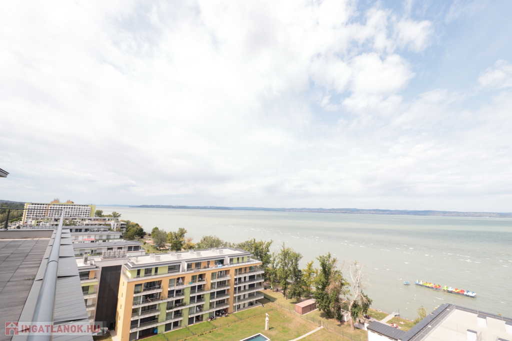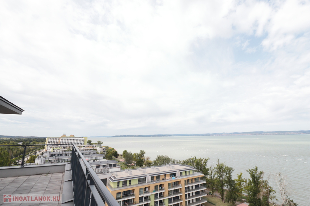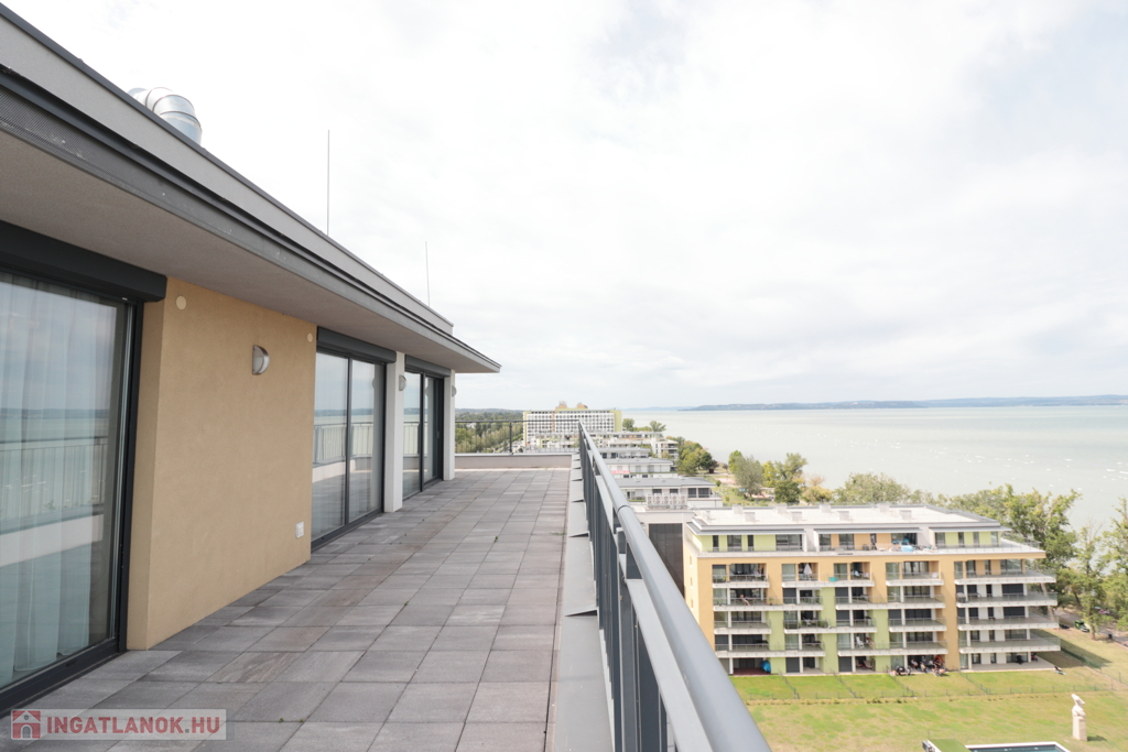 A 11 emeletes társasház legfelső szintjén, teljesen új tégla ráépítéssel kialakított exkluzív penthouse lakás várja új tulajdonosát. A 135 m²-es luxuslakás 87 m²-es saját teraszáról 180 fokos balatoni panoráma élvezhető – nyugatra naplemente, keletre napfelkelte, északon pedig a víztükör szinte elérhető közelségben.