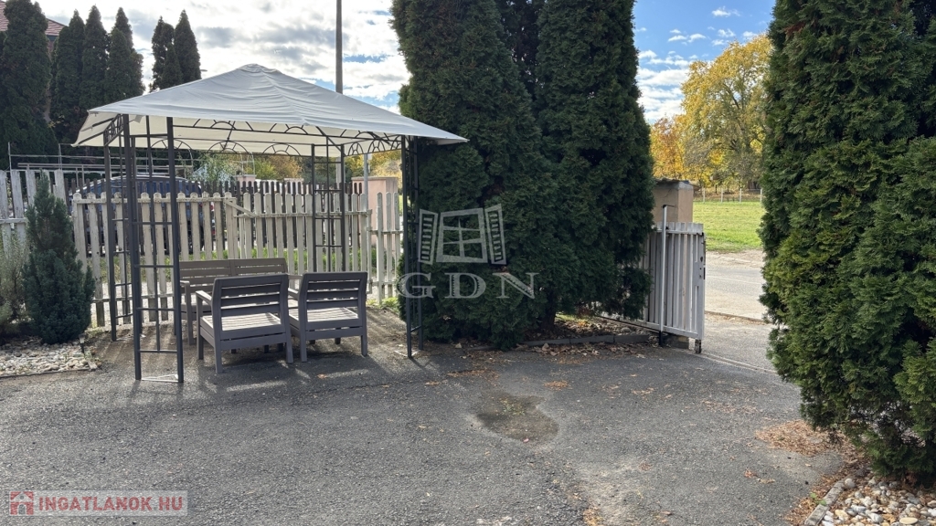 Udvari tároló, szaletli, kertben mosott kavics és virágok