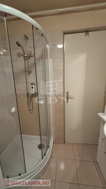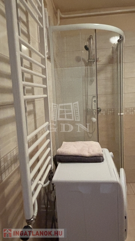 Fürdőszoba, tusolóval, wc, mosdó, törölköző szárító