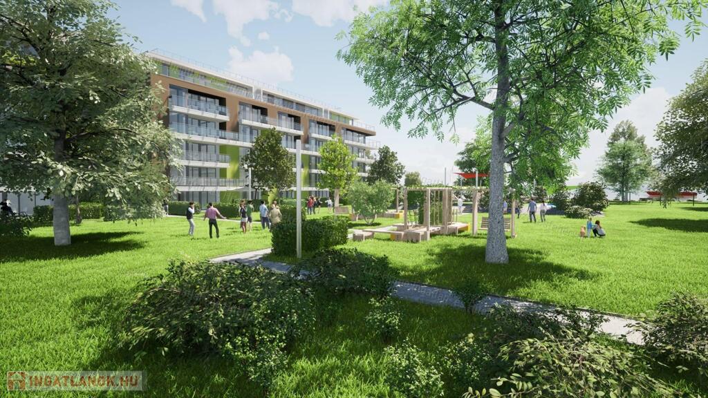 Siófok hangulatos, panorámás részén kerül megvalósításra ez a közvetlen vízparti 100 lakásos, újépítésű társasház.