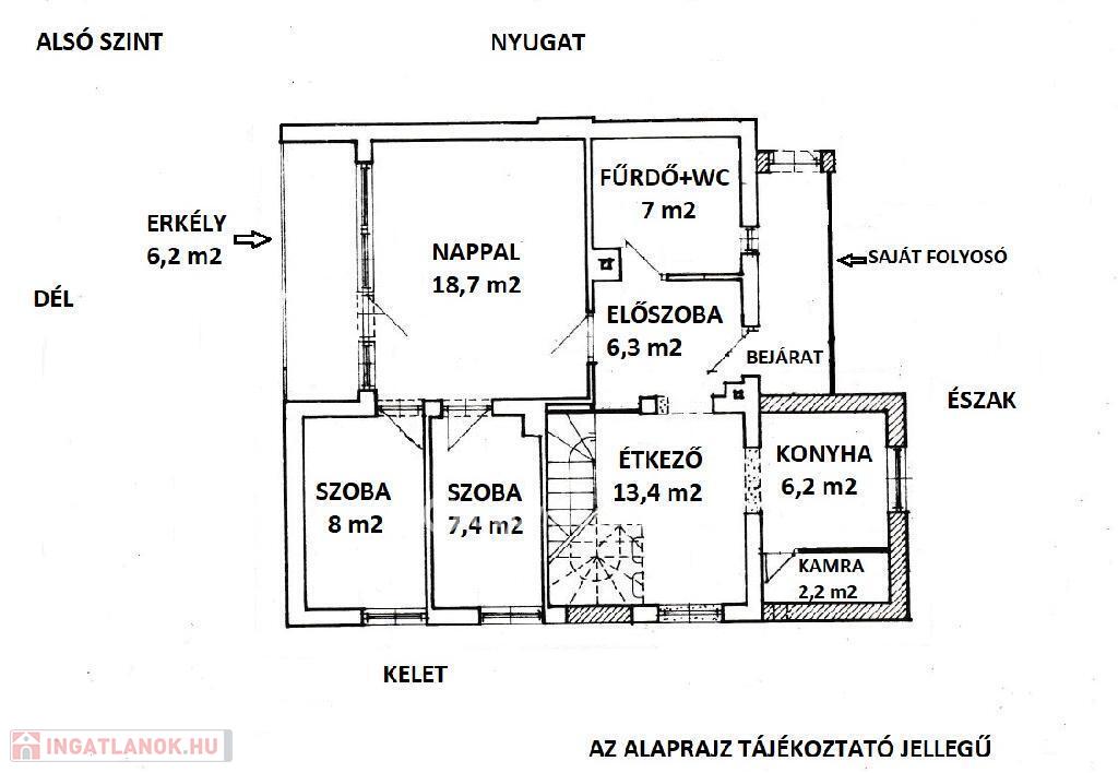 A lakás bejárata az 1. emeletről nyílik.
