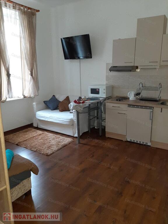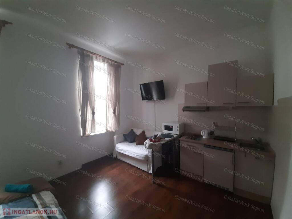 Kettő az egyben!Két első emeleti kis lakás, Sopron belvárosához közel eső részen, egy helyrajzi számon eladó.A két lakás összesen 68 m2 és egy közös használatú előtér választja ketté. Mindkét lakás amerikai konyhás-hálóteres kialakítású, a fürdőszoba WC-vel közös helyiségben kialakított. A belmagasság (3,2 m) ellenére nagyon kicsi a fűtésszámla, ami részben a vastag falaknak köszönhető. A polgári jelleg nemcsak költséghatékonysága miatt, atmoszférájában is az ingatlan vonzerejét erősíti. Jelenlegi tulajdonosa airbnb-re hasznosította, mely tartós bevételi forrást biztosított számára, költözés miatt viszont most kénytelen megválni a lakásoktól. A teljes bútorzat a vételár része.A lakáshoz tartozik egy kis méretű tároló és egy padlásrész mely az első, utcafronti lakásrész felett található- Igy lehetőség nyílik az ingatlan esetleges bővítésre is.A társasház 6 lakással rendelkezik, jelentós megtakarítással rendelkezik mely a jövőben tervezett felújításokat fedezi.Az udvar fel lett osztva a lakások között, így ehhez az ingatlanhoz is tartozik egy kb. 35 m2 nagyságú kis kertrész, ami saját célra alakítható. Rövid időn belül birtokba vehető.A belváros csak egy séta, mégis nyugodt környék.