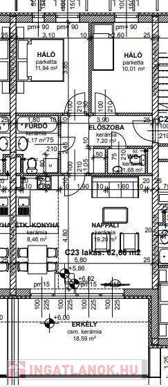 Sopron kertvárosi övezetében, most induló új projekt keretében eladó egy 72 m2 méretű nappali+ 2 szobás, nagy erkélyes, második emeleti lakás.